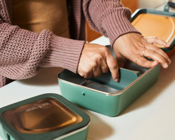 Klean Kanteen Rise Box - герметичный контейнер для еды из нержавеющей стали. Прочная, простая в уходе конструкция не содержит ни одной пластиковой детали. Выполнена из безопасных для здоровья материалов. Нержавеющая сталь не вступает в реакцию с продуктами. Обновленная модель Rise на 90% состоит из переработанного металла, что делает ее дружественной к окружающей среде. Снаружи контейнер покрывает ультрапрочная экологическая краска Klean Coat, а прилегание крышки обеспечивает пищевой силикон. Ланчбокс Klean Kanteen Rise Box удобно брать в путешествия и на пикники, хранить продукты дома, носить обеды на работу или давать детям в школу. Контейнер не протекает - и ваши вещи, и еда надежно защищены.