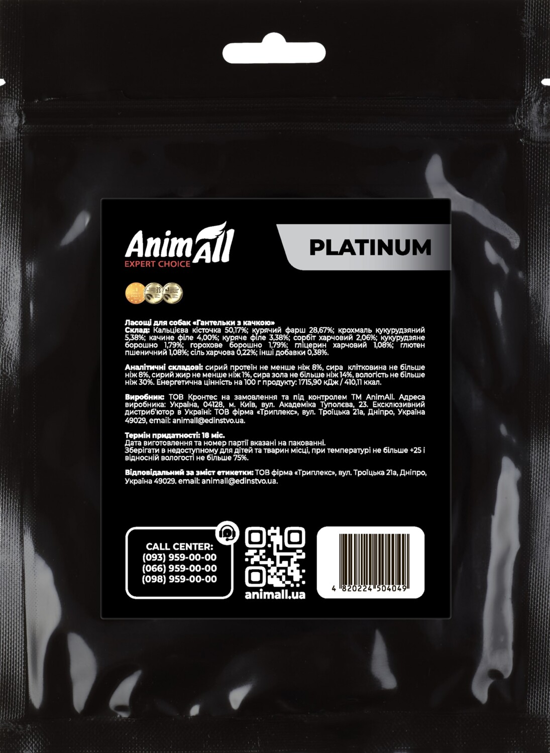 Лакомство для собак AnimAll Platinum Гантельки с уткой 200 г