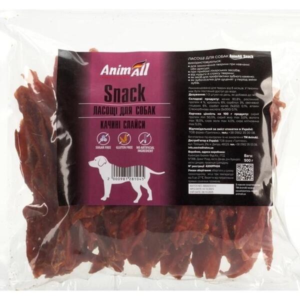 - Лакомство для собак AnimAll Snack утиные слайсы 500 г