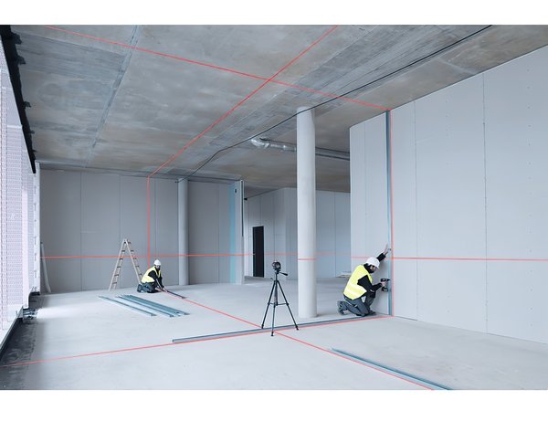 - Безграничные возможности применения: одна горизонтальная и две вертикальных линии в диапазоне 360° обеспечивают разнообразное применение этого инструмента, например для выполнения одновременной маркировки, выравнивания и нивелирования внутри помещений