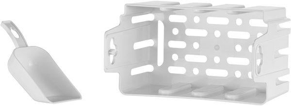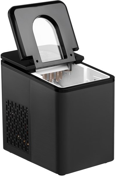 Корпус ледогенератора выполнен из прочного поликарбоната черного цвета. На крышке расположено прозрачное окошко, сенсорная панель управления с индикаторами питания, отсутствие воды и полное заполнение корзины. В комплекте поставки есть специальная лопатка, а быстрый слив воды реализован с помощью клапана в нижней части устройства.