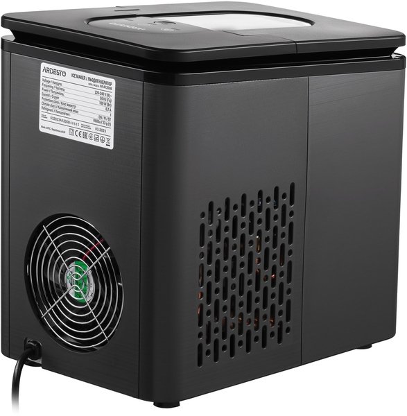 Несмотря на небольшие размеры, производительность ледогенератора ARDESTO IM- A1200B на самом высоком уровне. В час он способен заморозить 500 г льда, а в сутки – 12 кг. За один цикл, который длится около 9 минут, выходит девять льдинок округлой формы. Корзина рассчитана на 600 г, а резервуар для воды вмещает 1,8 л. При работе устройства используется активная система охлаждения. Доступна функция самоочистки.