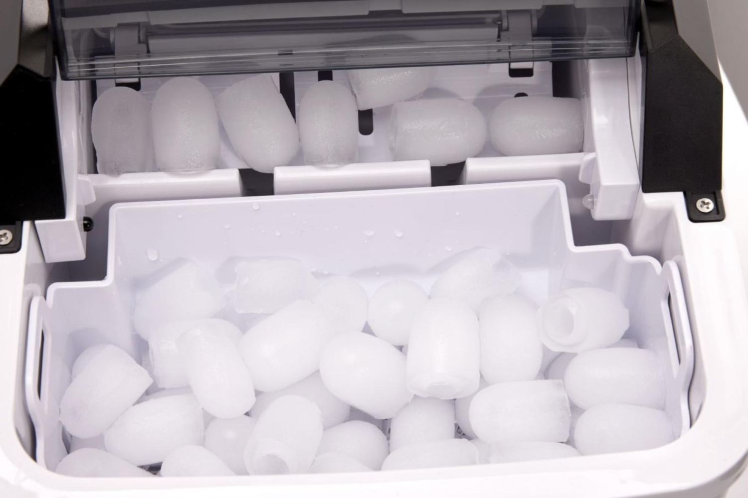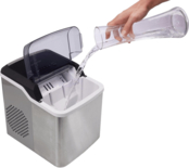 Резервуар для воды вмещает до 1,3 л. Индикатор уровня воды напомнит вам, когда надо наполнить запас воды в резервуаре. Льдогенератор легко чистить. Прибор имеет сливное отверстие снизу, что упрощает его опорожнение. Нужно лишь протереть внутреннюю поверхность сухой тканью.