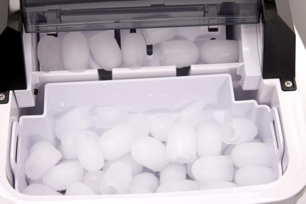 На панели управления есть только одна кнопка. Вы можете выбрать большие или маленькие кубики льда. Световой индикатор заполненной корзины для льда включится, когда корзина для льда будет заполнена. Индикатор уровня воды напомнит вам, что в резервуар надо добавить воды. Устройство также имеет световой индикатор самоочистки.