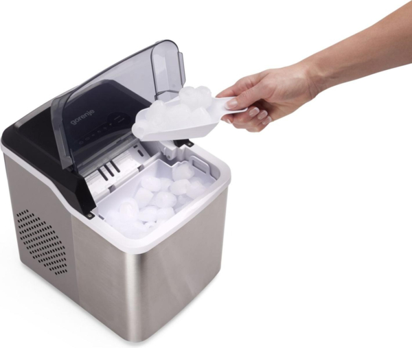 Для того чтобы иметь готовые кубики льда про запас, достаточно наполнить резервуар водой до указанной отметки и выбрать желаемый размер кубиков. Прибор автоматически начнет готовить кубики льда шарообразной формы. Льдогенератор Gorenje не тяжелый, его легко перемещать и переносить. Подходит для использования дома, в офисных помещениях, небольших семейных кафе, мини-гостиницах.