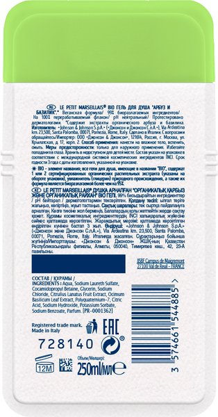 Le Petit Marseillais БIO Гель для душа «Арбуз и базилик»