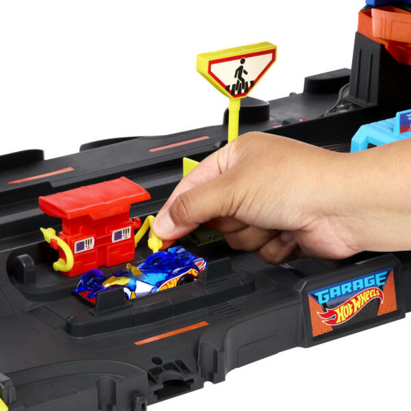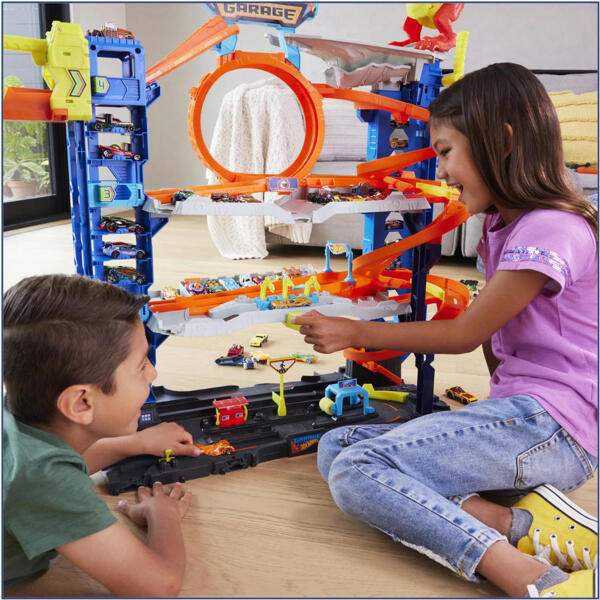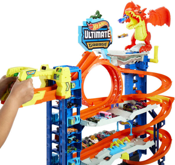Откройте все четыре уровня гонок, трюков и сюжетных игр с супергаражом Hot Wheels серии «City». На каждом уровне вас ждут увлекательные игры: гонки бок о бок, трюки в петле и эпическая битва с драконом, поедающим машины. В набор входят две машинки Hot Wheels. В нем достаточно места для парковки более чем 50 игрушечных машинок в масштабе 1:64. Также он сочетается с другими наборами, благодаря чему дети могут построить собственный город Hot Wheels. Дополнительные наборы продаются отдельно.