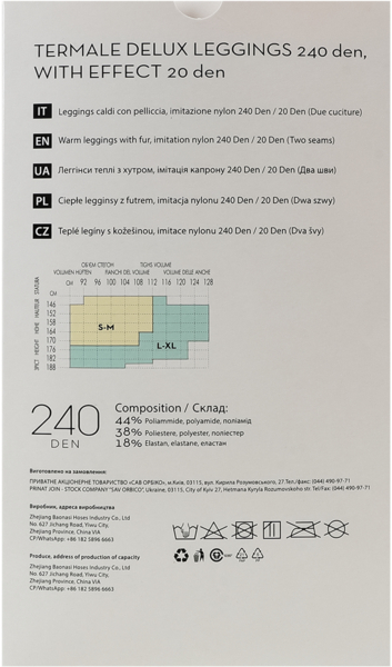 - Эффект: модель имеет эффект 20 Den — выглядит тоньше, но материал остается плотным и теплым;
