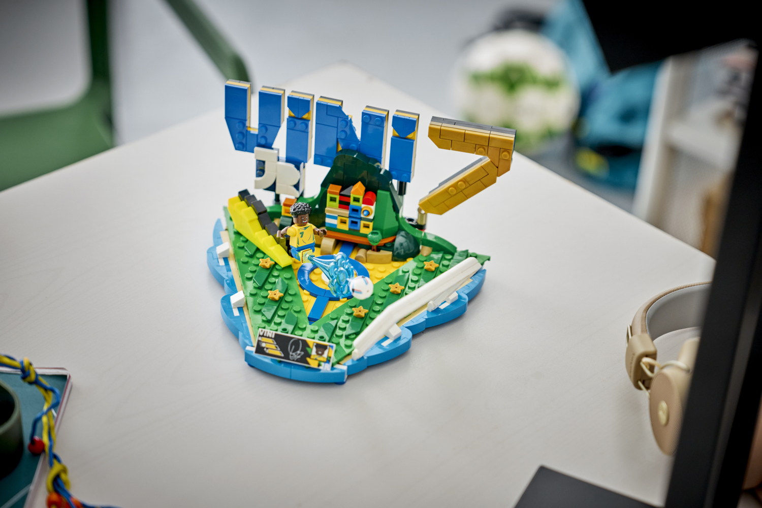 Любители футбола получат возможность отдать дань уважения молодой легенде, собрав коллекционную модель для демонстрации, посвященную Винисиусу Жуниору, и найти все пасхальные яйца в наборе. Основание имеет форму инициалов Винисиуса и выполнено в цветах его национальной команды, Бразилии, а также содержит большую "7" - номер его футболки.