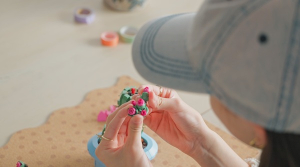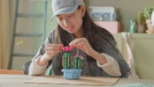 Соберите меньший кактус с розовыми бутонами.