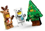 Включает персонажей в костюмах белого медведя, оленя и елки.