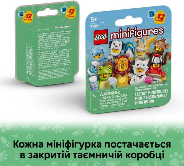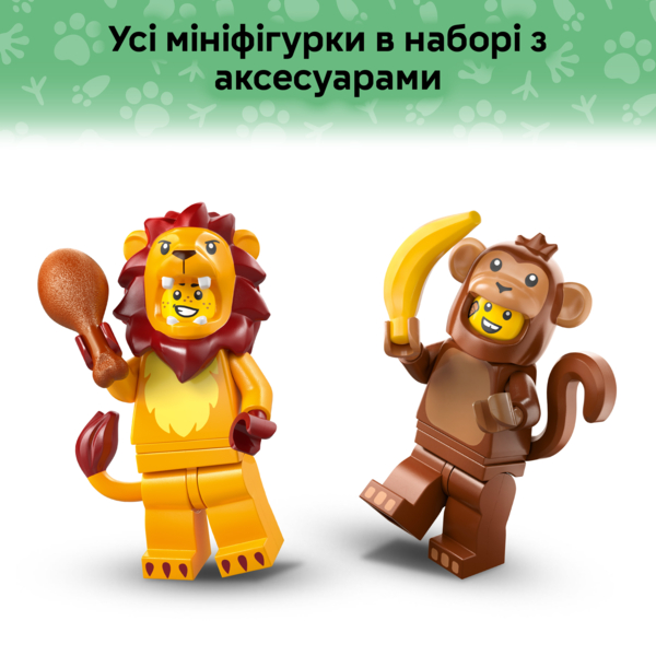 Девочки и мальчики в возрасте от 5 лет могут собрать 1 из 12 детализированных животных, в частности коалу, дельфина, обезьяну, павлина или золотую рыбку, и все они имеют по крайней мере 1 аксессуар. Каждая из минифигурок находится в закрытой таинственной коробке. Откройте свою таинственную коробку и узнайте, какой персонаж скрывается внутри. Расширьте свою коллекцию минифигурок или воспроизводите с ними интересные истории с имеющимися игровыми наборами.