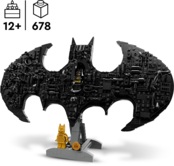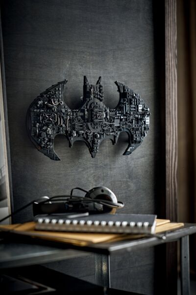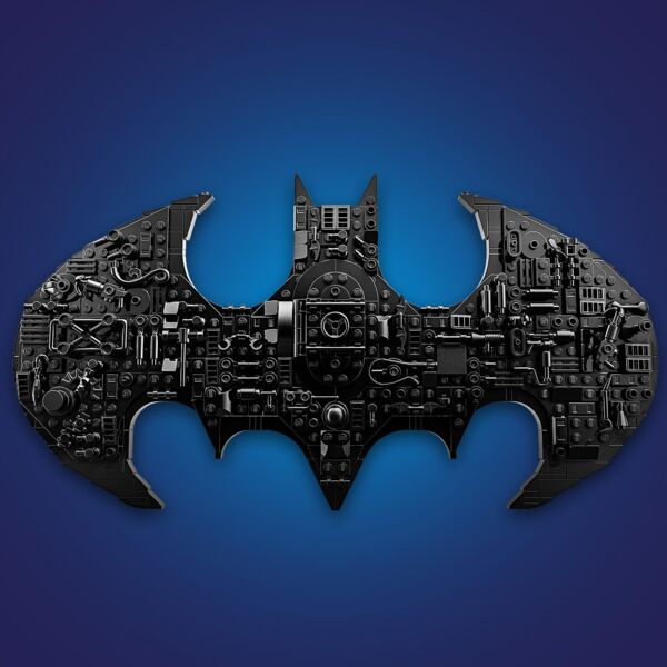 Выставьте символ Бэтмена на подставке или прикрепите к стене с помощью встроенной опоры. Модель украшена известными предметами из вселенной DC, которые можно снимать и перемещать, в частности Batarangs и молот Harley Quinn. Набор содержит золотую минифигурку Бэтмена и золотую юбилейную монету, а также традиционную минифигурку Бэтмена, которую можно поместить в люк в центре модели, который выглядит как дверь хранилища костюмов Batcave.
