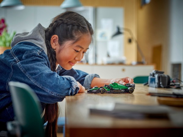Этот набор с транспортом содержит минифигурку пилота в костюме Aston Martin Aramco F1 и крылатом шлеме, которого дети могут разместить в кабине пилота и разыграть увлекательные сюжетные гонки.