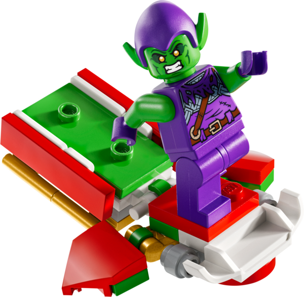 - Минифигурки Человека-паука, Зеленого Гоблина, Майлза Моралеса, Паука-призрака и Венома.