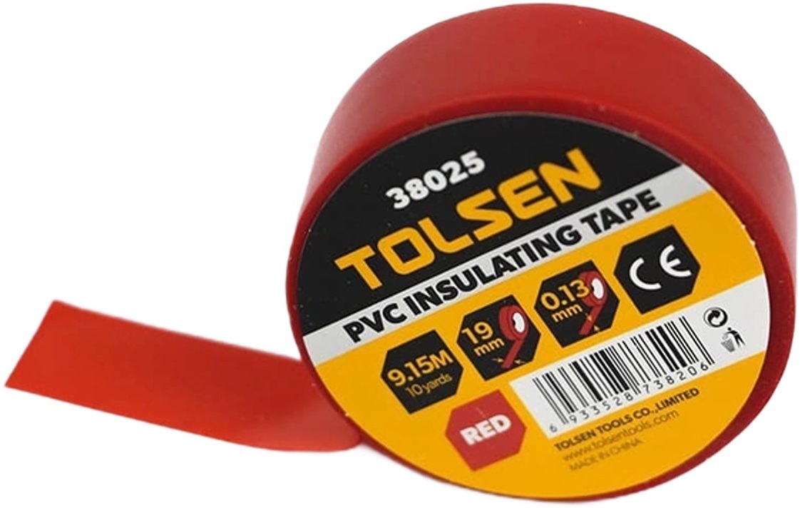Лента изоляционная Tolsen, 9,15м, 19x0.13мм, красная (38025)