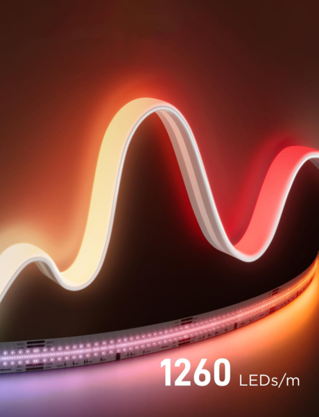 - Технология COB нового поколения: 1260 светодиодов/м плотно прилегают друг к другу благодаря технологии COB, что позволяет добиться по-настоящему безупречных эффектов и высокой яркости.