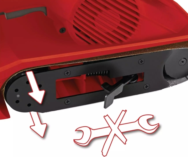 Шлифовальная лента может быть изменена только с поворотом запястья и без каких-либо инструментов.