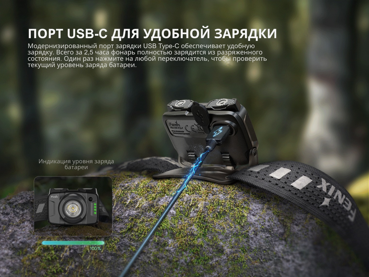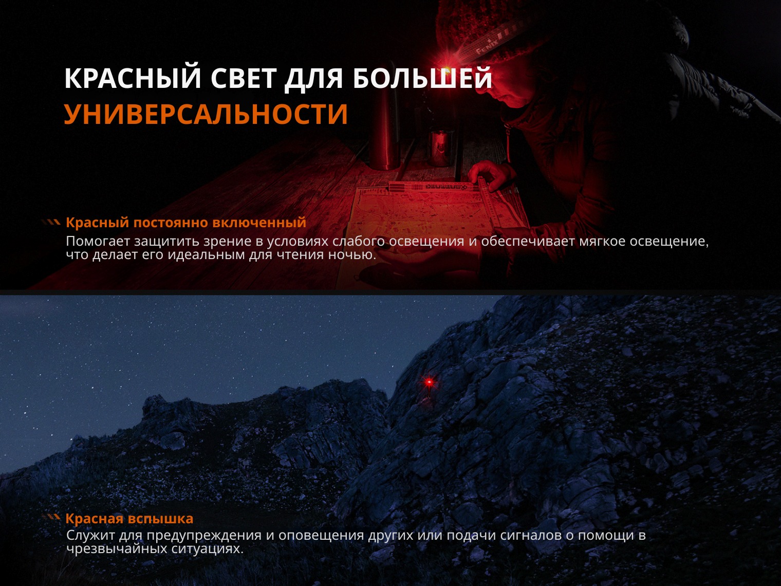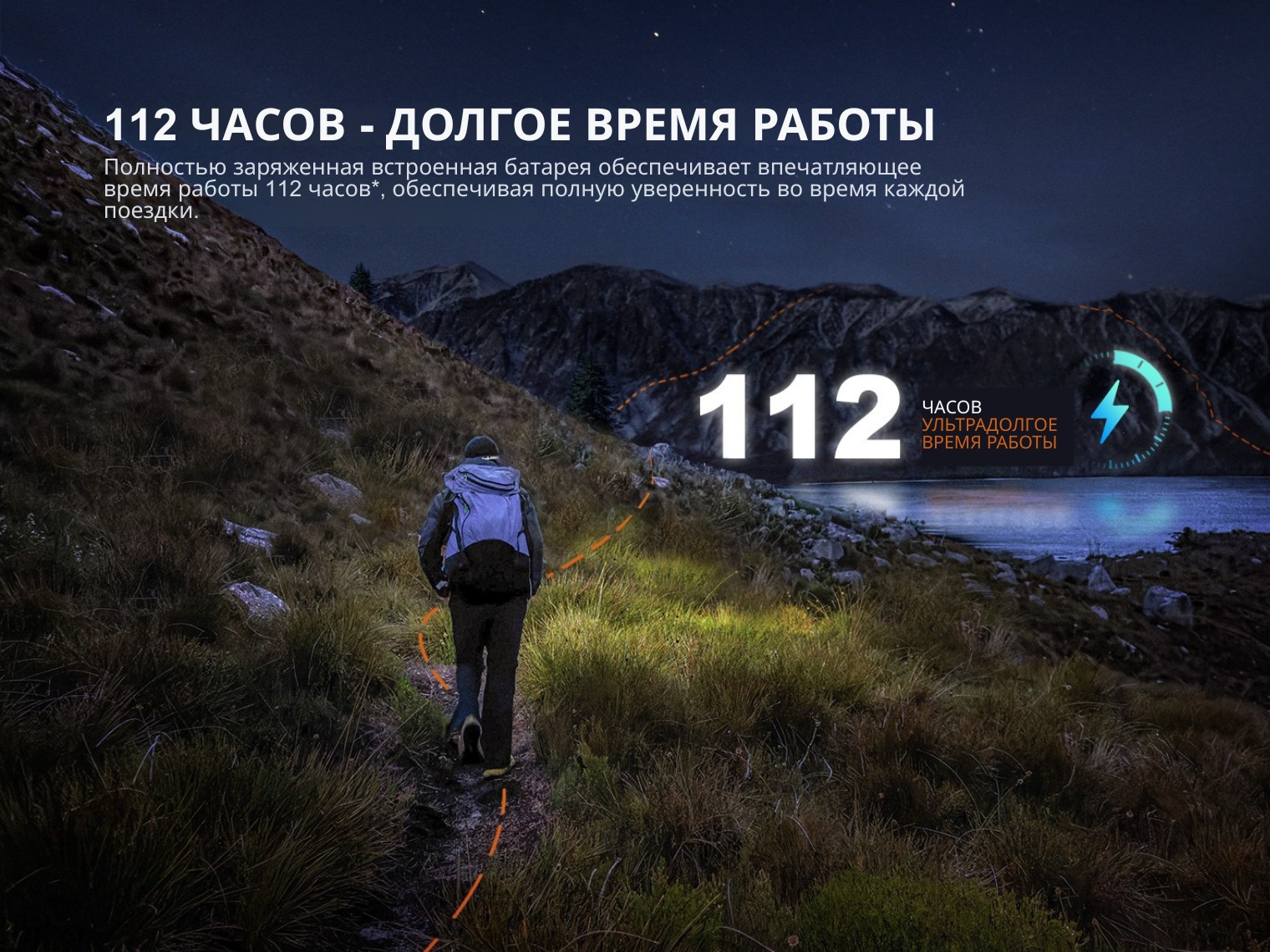 Налобный фонарь Fenix HL12R V2.0 работает от встроенного аккумулятора 950 мАч, который заряжается через порт USB Type-C. Вам доступны 4 режима белого света яркостью до 500 лм, а также постоянный и мигающий красный луч. Верхние переключатели обеспечивают быструю настройку освещения одной рукой. Передняя часть корпуса изготовлена из алюминия. Герметичность по стандарту IP66 позволяет использовать фонарь в непогоду.