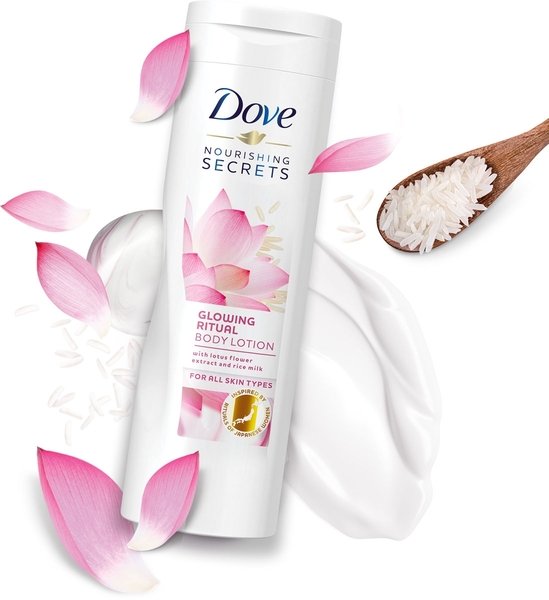 Лосьон для тела Dove с экстрактом цветка лотоса и рисовым молочком, созданный по мотивам ритуалов красоты женщин из разных уголков планеты, содержат экзотические ингредиенты и обладают неповторимыми ароматами. Формула с рисовым молочком прекрасно увлажняет вашу кожу, а нежный аромат лотоса не оставит вас равнодушной. Экстракт цветов лотоса придает сияние вашей коже.
