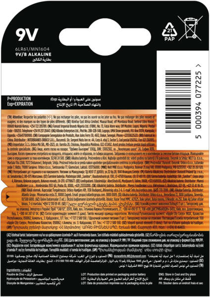 | Комплектация (возможны изменения в разных поставках) | Батарейка 6LR61 |