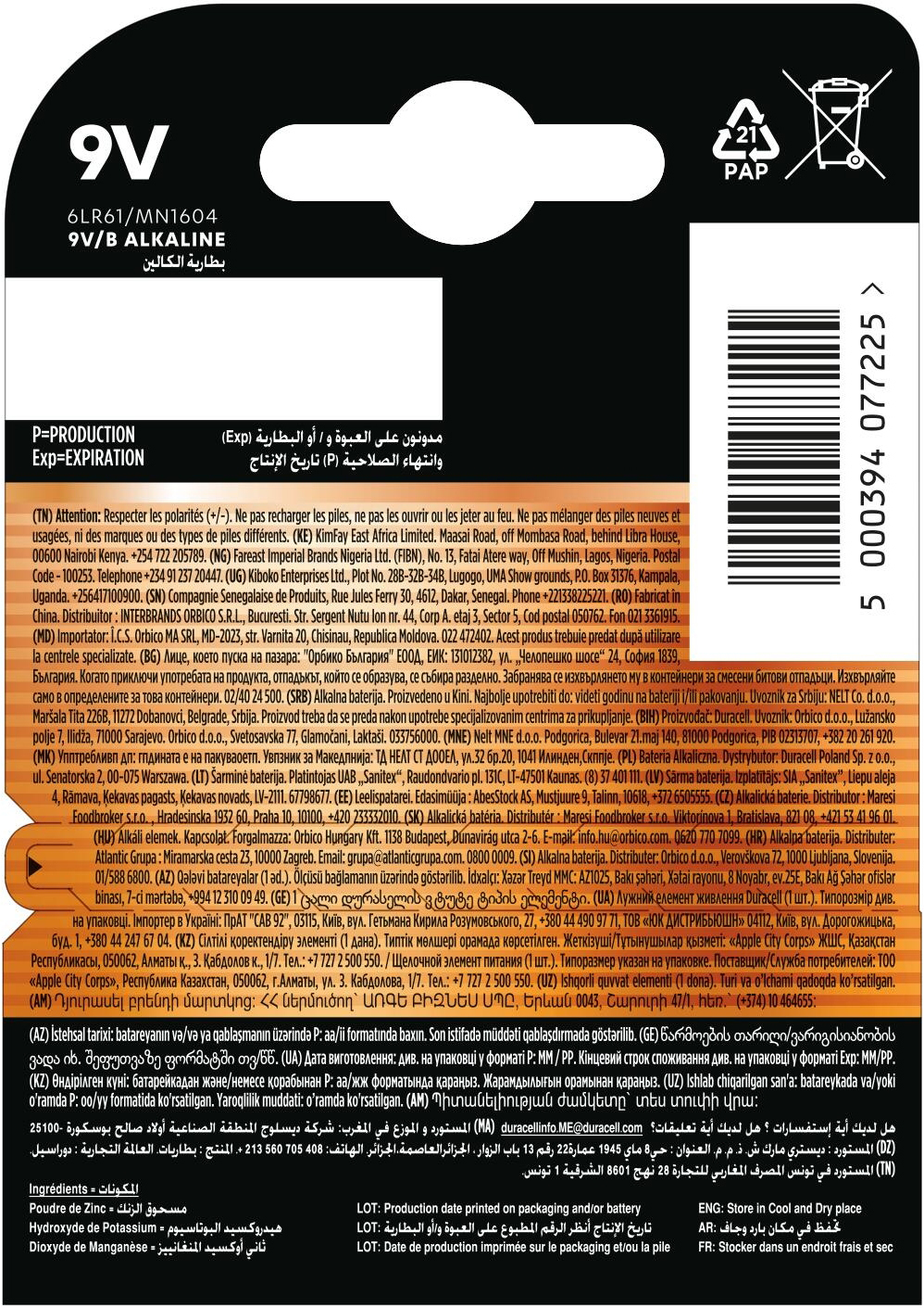 - Батарейка Duracell 9V 1 шт (5000394077225)