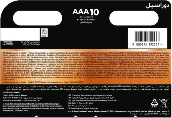 Duracell предлагает широкий ассортимент батареек, которые могут быть использованы в электронных устройствах, требующих надежного обеспечения энергией. Батарейки Duracell ААA – это многоцелевые щелочные батарейки, идеальные для надежного питания энергией устройств повседневного использования, которые нуждаются в дополнительной энергии. Щелочные батарейки Duracell работают до 15 раз дольше. Технология Duralock сохраняет батарейки Duracell, которые не использовались, готовыми к использованию и заряженными до 10 лет при хранении в нормальных условиях. Эти батарейки позволяют вам свободно наслаждаться использованием ваших приборов, давая вам продукт, на который вы можете положиться. Батарейки Duracell лучше всего использовать, когда вы ищете надежный источник энергии длительного действия для ваших повседневных устройств, таких как моторизованные игрушки, фонарики, портативные игровые консоли, пульты дистанционного управления и т. д.