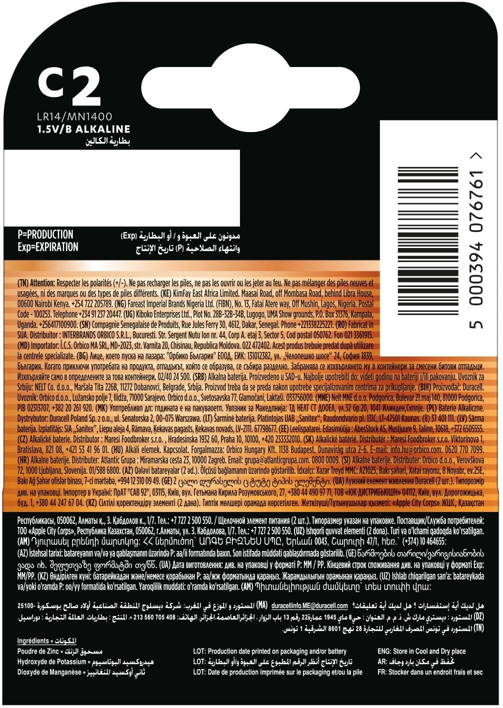 - Батарейки Duracell C 2 шт (5000394076761)