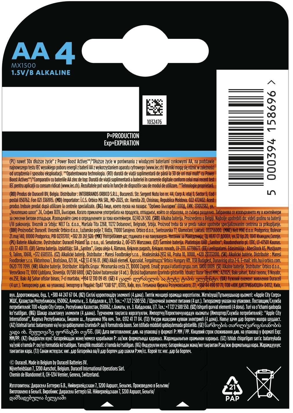 - Батарейки Duracell Optimum AA 4 шт (5000394158696)