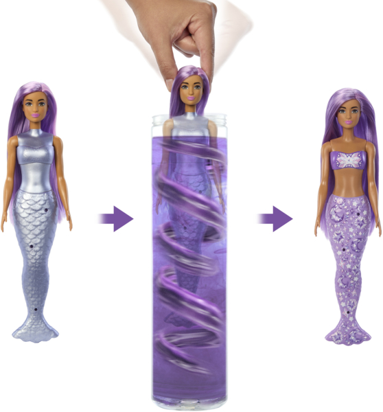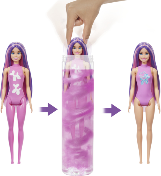 Barbie Color Reveal - это настоящее шоу неожиданностей, ярких красок и волшебных перевоплощений. Каждая кукла прячется в тубусе и сохраняет свой стиль в тайне - вплоть до момента проявления с помощью воды. Это игра, которая дарит эмоции с первой секунды. В серии представлены куклы в различных миксах и образах - какую из них откроете именно вы? Все они имеют яркие цветные волосы и покрытую водорастворимой краской фигуру - только теплая вода откроет настоящий внешний вид Барби.