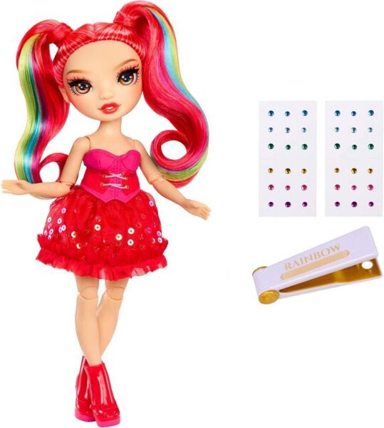 Встречайте Вивьен Руж из коллекции Rainbow High Be Dazzling, где мода сочетается с креативностью самым гламурным образом. Эта потрясающая модная кукла сочетает в себе премиальное качество и впечатляющий стиль. Смелая красавица в насыщенном красном цвете привносит яркий гламур, бесстрашную уверенность и нотку капризной романтики в каждый момент.
