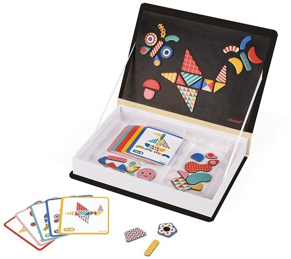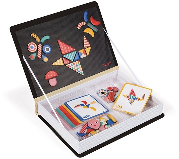 Самая любимая игра моей дочери - это магнитная книга. В её набор входит аж 43 магнитных элемента и 30 карточек - заданий. Нужно чётко воспроизвести форму фигуры показанной на карточке - задании. Такое занятие не только развивает мелкую моторику рук дочери, но и внимательность, усидчивость, концентрацию. Теперь играем всем семейством. Советую.