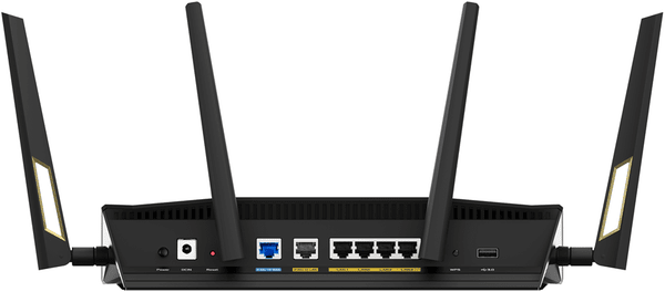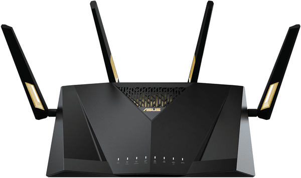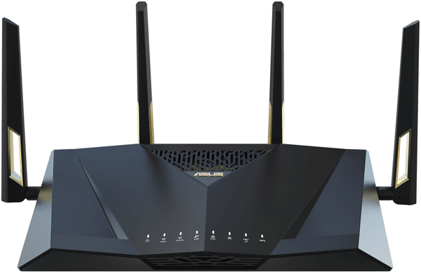 RT-AX88U Pro – это двухдиапазонный беспроводной маршрутизатор с антенной конфигурацией 4х4. Используя широкие каналы связи (160 МГц) и квадратурную модуляцию 1024-QAM, он может обеспечить общую скорость передачи данных в сети Wi-Fi на уровне 6000 Мбит/с: 1148 Мбит/с в диапазоне 2,4 ГГц и 4804 Мбит/ с в диапазоне 5 ГГц. Таким образом, эта модель в 2,3 раза быстрее двухдиапазонных маршрутизаторов стандарта 802.11ac с аналогичной антенной конфигурацией.