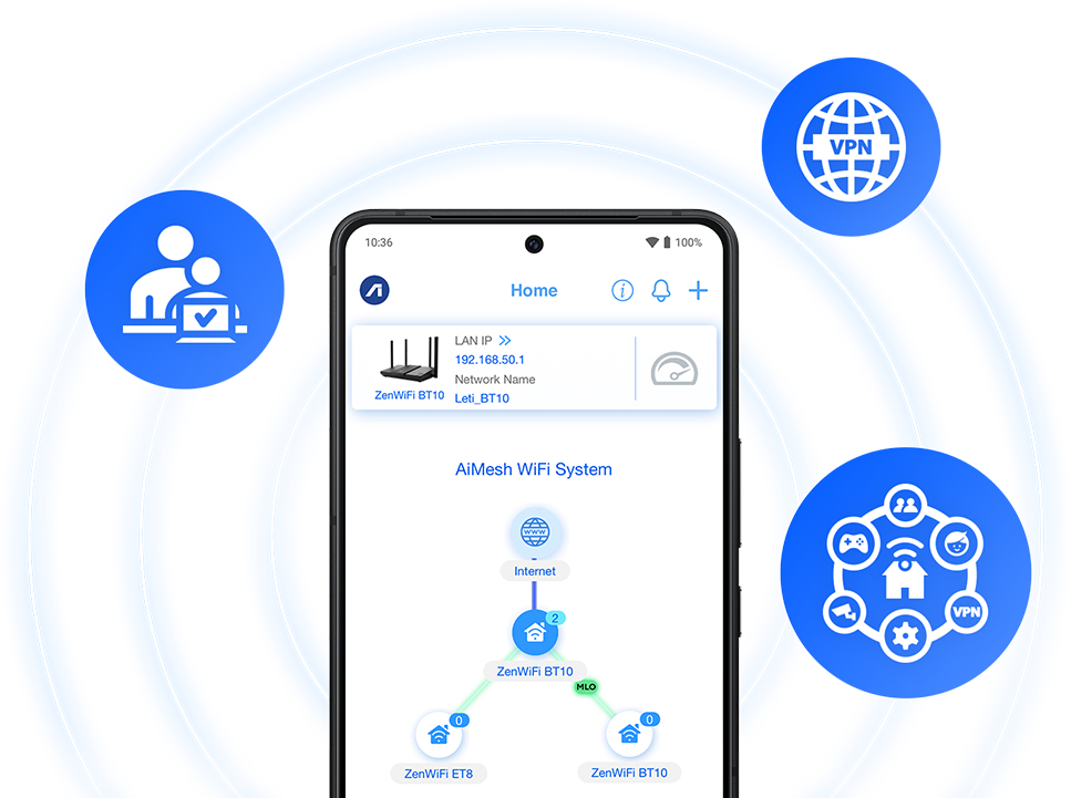 RT-BE50 позволяет легко расширить домашнюю сеть с помощью любого AiMesh-совместимого маршрутизатора ASUS, независимо от поколения WiFi. Превратив имеющиеся маршрутизаторы в mesh-узлы, вы сможете расширить зону покрытия сети и уменьшить количество электронных отходов.