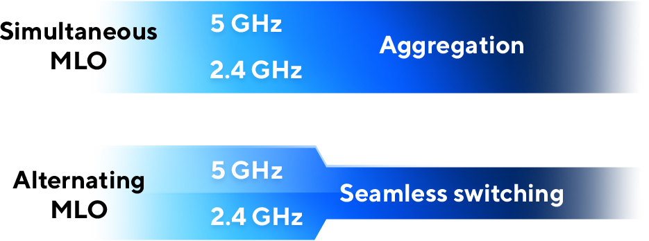 Технология Multi-Link Operation (MLO) интеллектуально объединяет пропускную способность частотных диапазонов 2,4 ГГц и 5 ГГц, минимизируя задержки в сети. ASUS RT-BE50 готов к работе с любыми, в том числе будущими, устройствами Wi-Fi 7, независимо от того, какой режим MLO они используют.