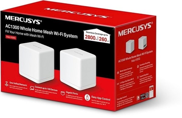 - Маршрутизатор MERCUSYS HALO H30G 2PK AC1300 2xGE LAN/WAN MESH (HALO-H30G-2-PACK)