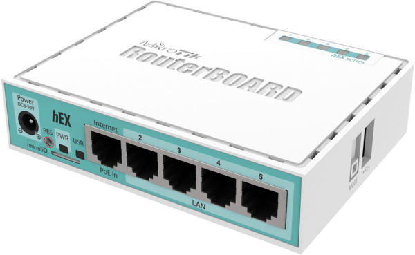 MikroTik hEX (RB750Gr3) - компактный маршрутизатор для использования в сетях SOHO-сегмента. Несмотря на небольшие размеры, устройство обеспечивает высокую производительность и простоту в использовании, и все это благодаря мощному двухъядерному процессору MT7621A с рабочей частотой 880 MHz, оперативной памяти в 256 MB и операционной системе RouterOS L4, что позволяет решать многочисленные сложные задачи. Стоит также отметить, что наряду с пятью гигабитными сетевыми интерфейсами, маршрутизатор имеет USB порт и слот для microSD карты.