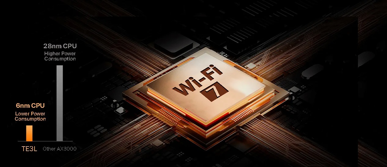 TE3L использует 6нм передовой техпроцесс с более высокой интеграцией, более низким энергопотреблением и тепловыделением, что значительно улучшает стабильность передачи сигнала Wi-Fi и обеспечивает более плавную работу сети.