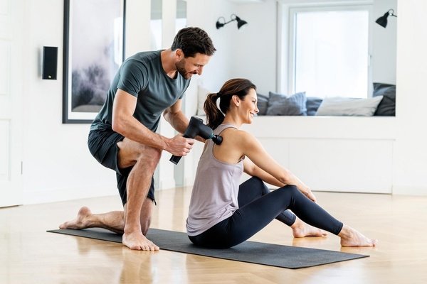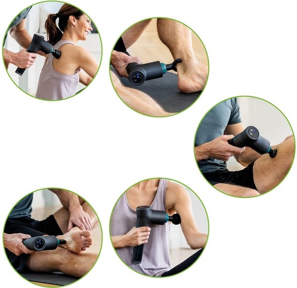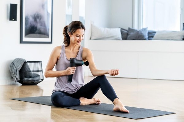 Массажный пистолет расслабляет мышцы и идеально подходит для восстановления после тренировки.