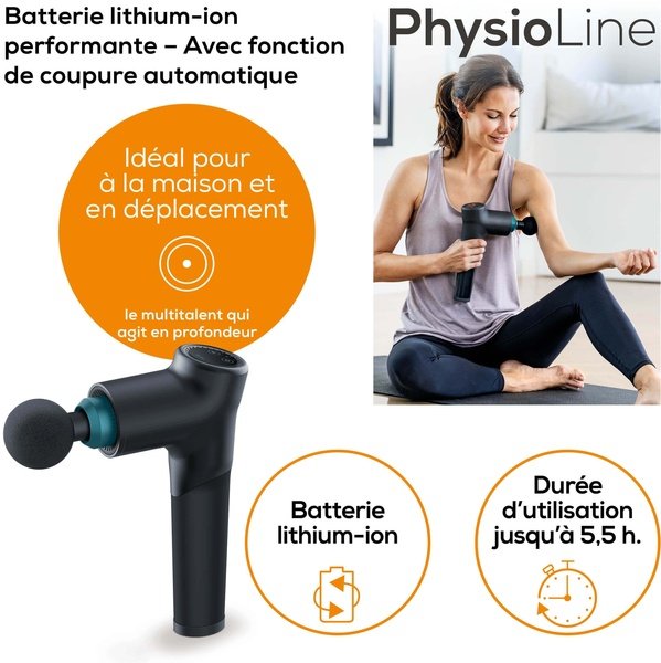 Жанно, добрий день! Потужний літій-іонний акумулятор тримає заряд до 5,5 годин. Це дозволяє провести цілу серію повноцінних сеансів масажу для всієї родини або брати його з собою у тривалі поїздки та в спортзал без потреби постійно шукати розетку