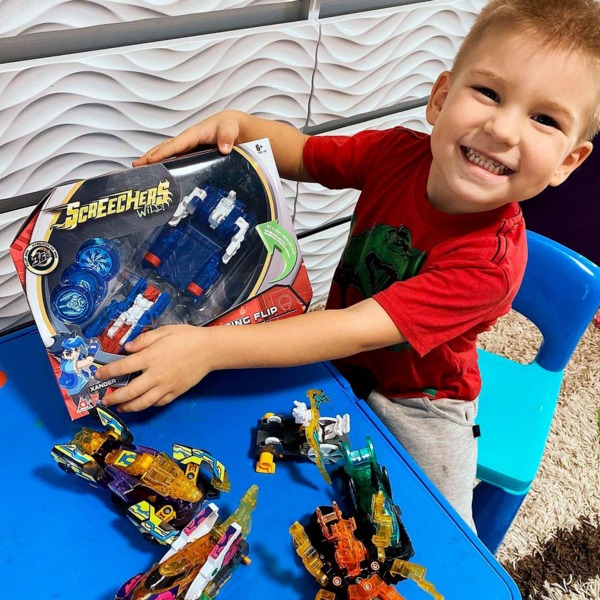 Screechers Wild — это первые в истории машинки, которые делают сальто и трансформируются в монстра прямо в воздухе. Чтобы эта машинка трансформировалась в рыцаря нужно только запустить ее, направляя на магнитные диски или наоборот запустить диски в машинку, при касании с которыми она сделает кувырок в воздухе и трансформируется. Для того чтобы трансформировать рыцаря обратно, нужно извлечь диски и закрепить пружину снизу машины, и вы снова можете вступать в бой. Диск имеет гладкую поверхность для безупречного скольжения и резиновую поверхность для фиксации на месте.