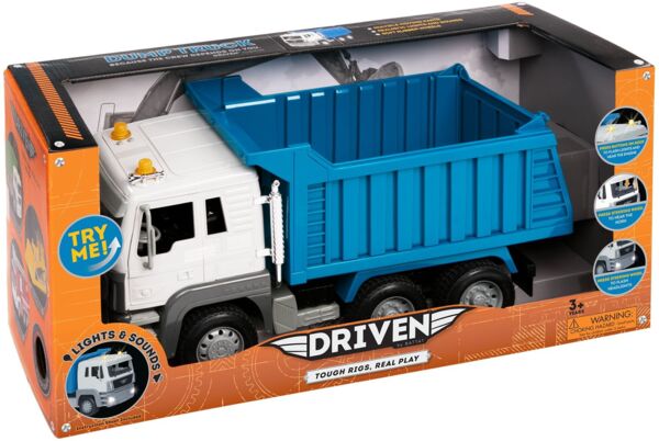 Этот самосвал шикарно исполнен, у него качественные детали, которые позволяют ребенку использовать машинку для разных целей. Пластик в основе машинки Driven плотный, с ним не случается неприятностей даже если самосвал случайно падает. Звуковое сопровождение довольно громкое для игр дома, но на улице эта игрушка незаменима. Покупали через этот сайт и я очень довольна.