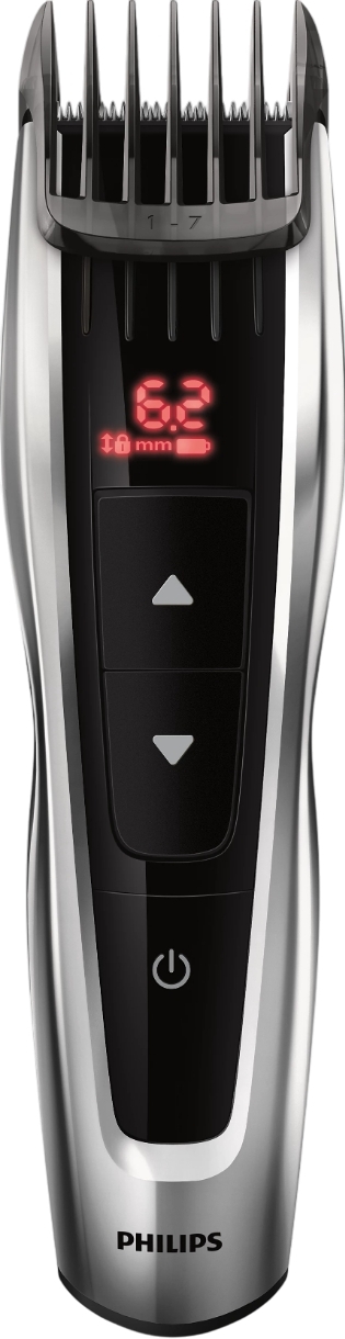 С помощью кнопок управления выберите нужную длину из 60 доступных вариантов и наденьте соответствующую насадку-гребень, в диапазоне которой есть выбранная длина. Равномерно с шагом 0,2 мм подстригайте волосы с насадкой-гребнем от 1 мм до 7 мм, а с шагом 1 мм - с насадками от 7 до 42 мм. Используйте машинку без насадки-гребня для короткой стрижки 0,5 мм.