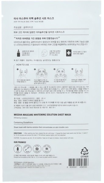 Маска для лица Missha Mascure Whitening Solution Sheet Mask Glutathione Осветляющая 27мл