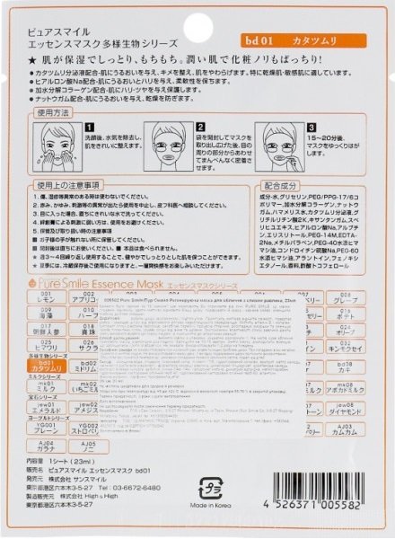 Похожие товары Маска для лица тканевая Pure Smile Essence Mask Snail с муцином улитки 23мл