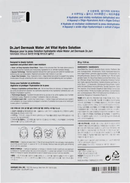 Маска для лица увлажняющая Dr.Jart+ Dermask Waterjet с гиалуроновой кослотой 25г*5шт