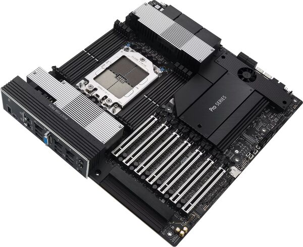 Семь слотов PCIe 5.0 x16, два порта LAN 10 Гбит/с, четыре слота M.2, два задних порта USB4 40 Гбит/с Type-C и поддержка SlimSAS NVMe.