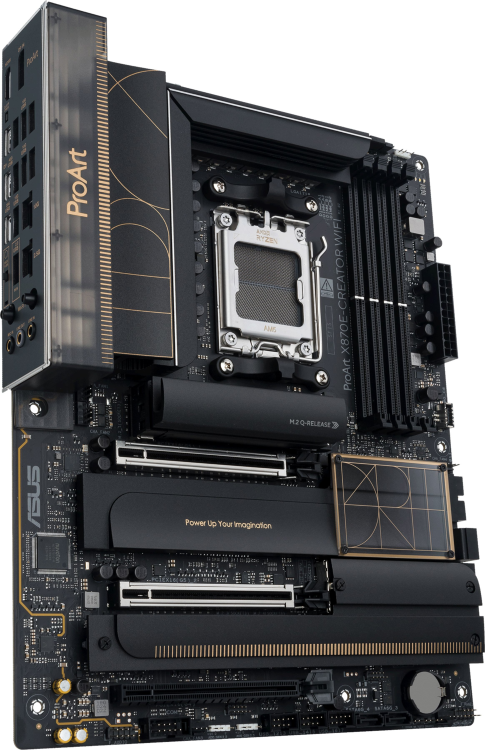 ProArt X870E-Creator WiFi расширяет возможности создателей всех уровней, максимизируя производительность новейших процессоров AMD Ryzen, слотами DDR5, PCIe 5.0 и молниеносным подключением, включая двойной USB4, 10G и 2.5G Ethernet и WiFi 7.