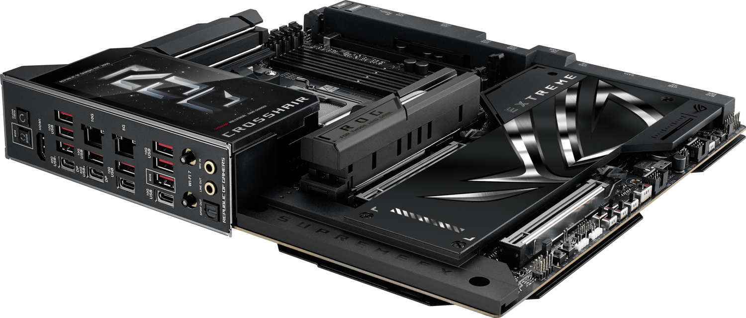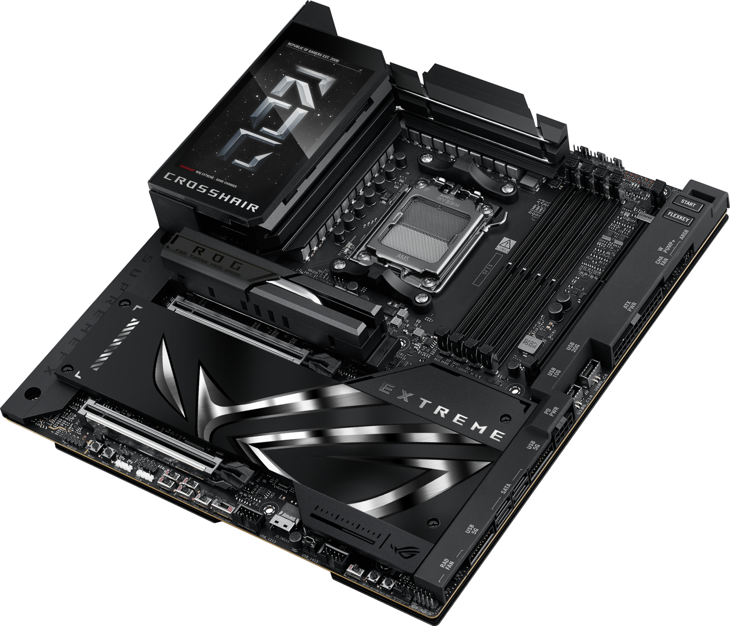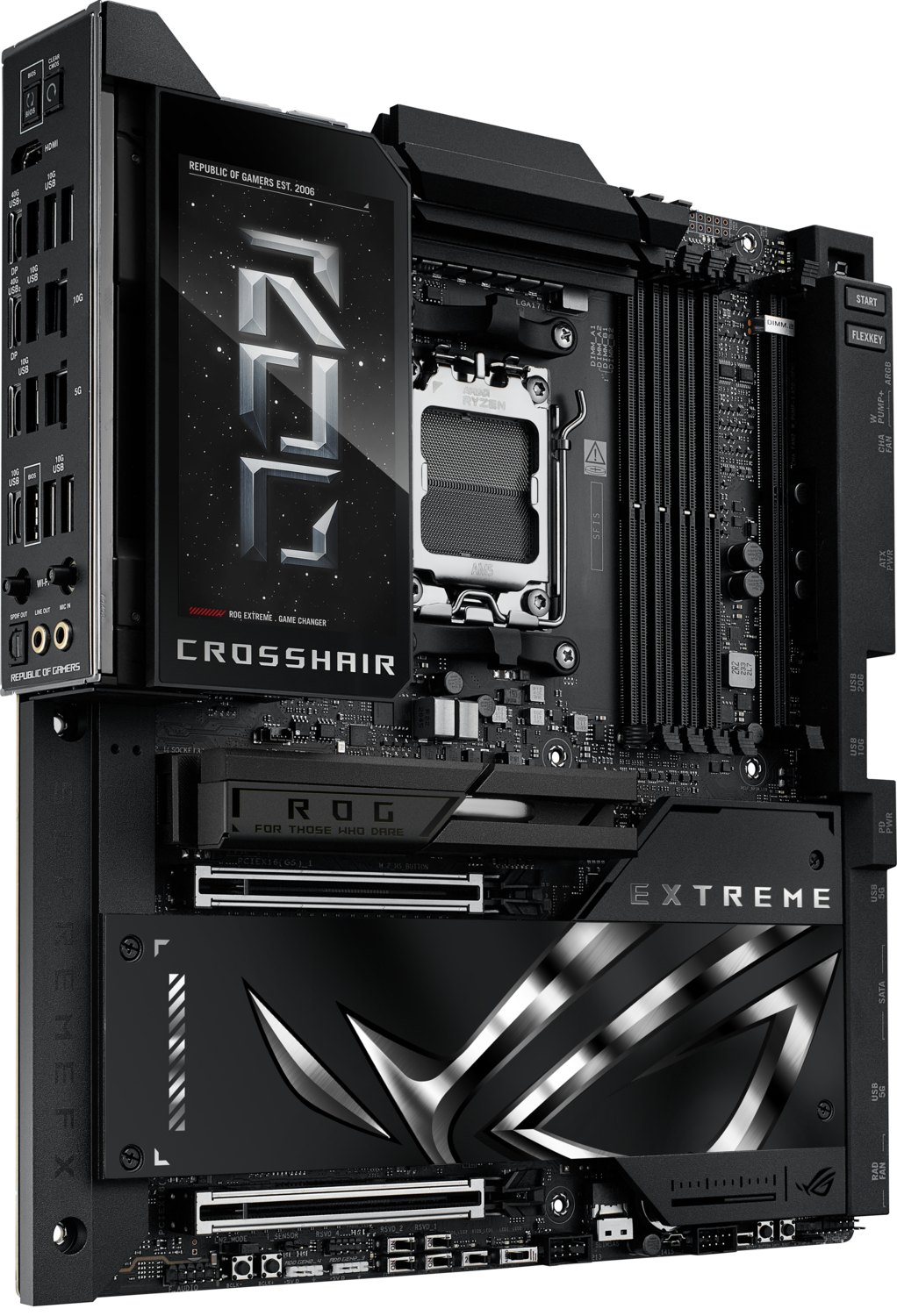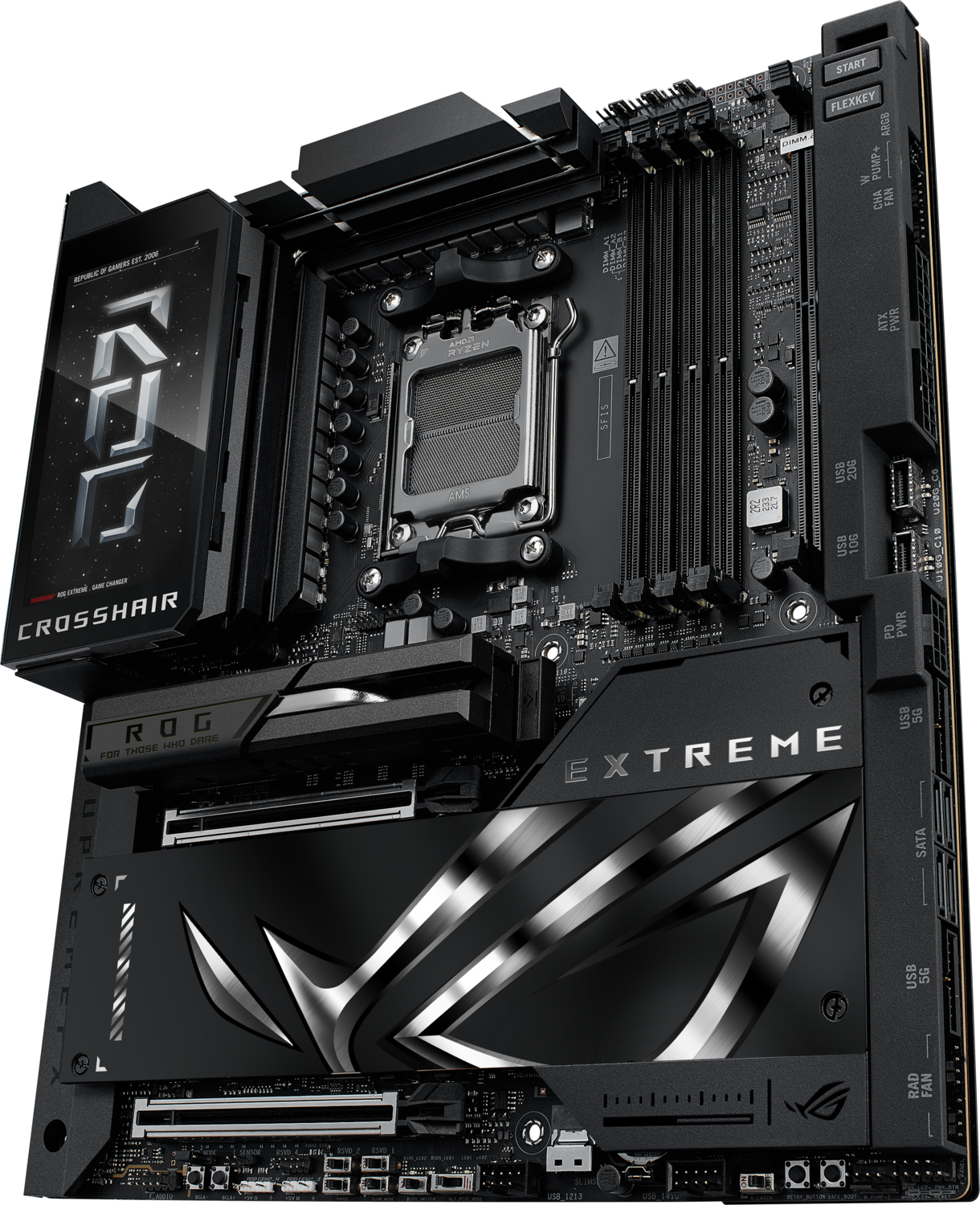 ROG Crosshair X870E Extreme оснащена полноцветным 5-дюймовым ЖК-экраном, который может отображать эксклюзивные анимации ROG, системную информацию и даже персонализированные услуги через Armoury Crate, позволяя геймерам определять свой уникальный стиль на ярком дисплее.
