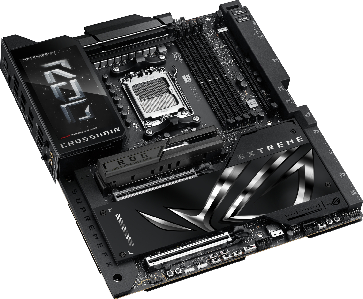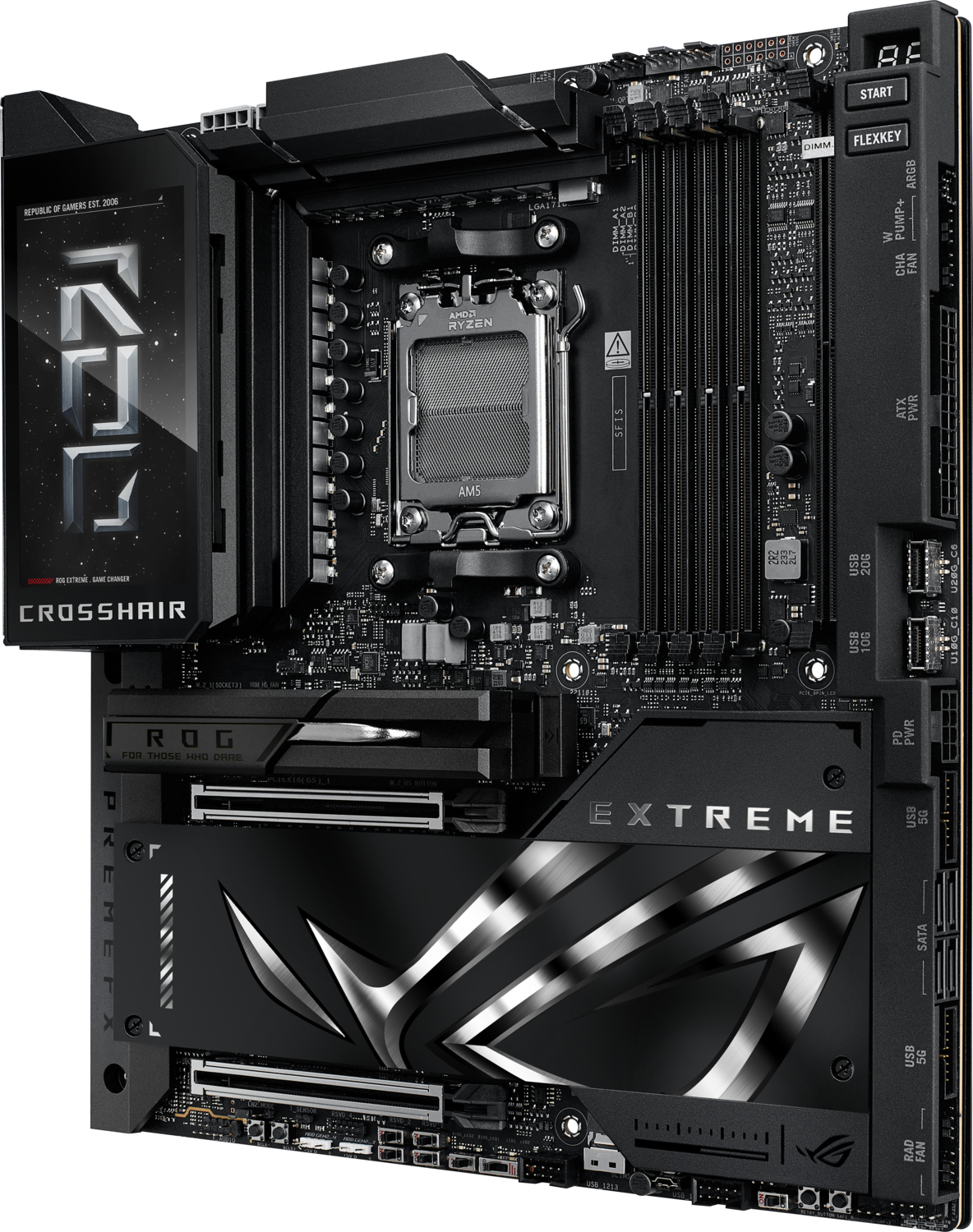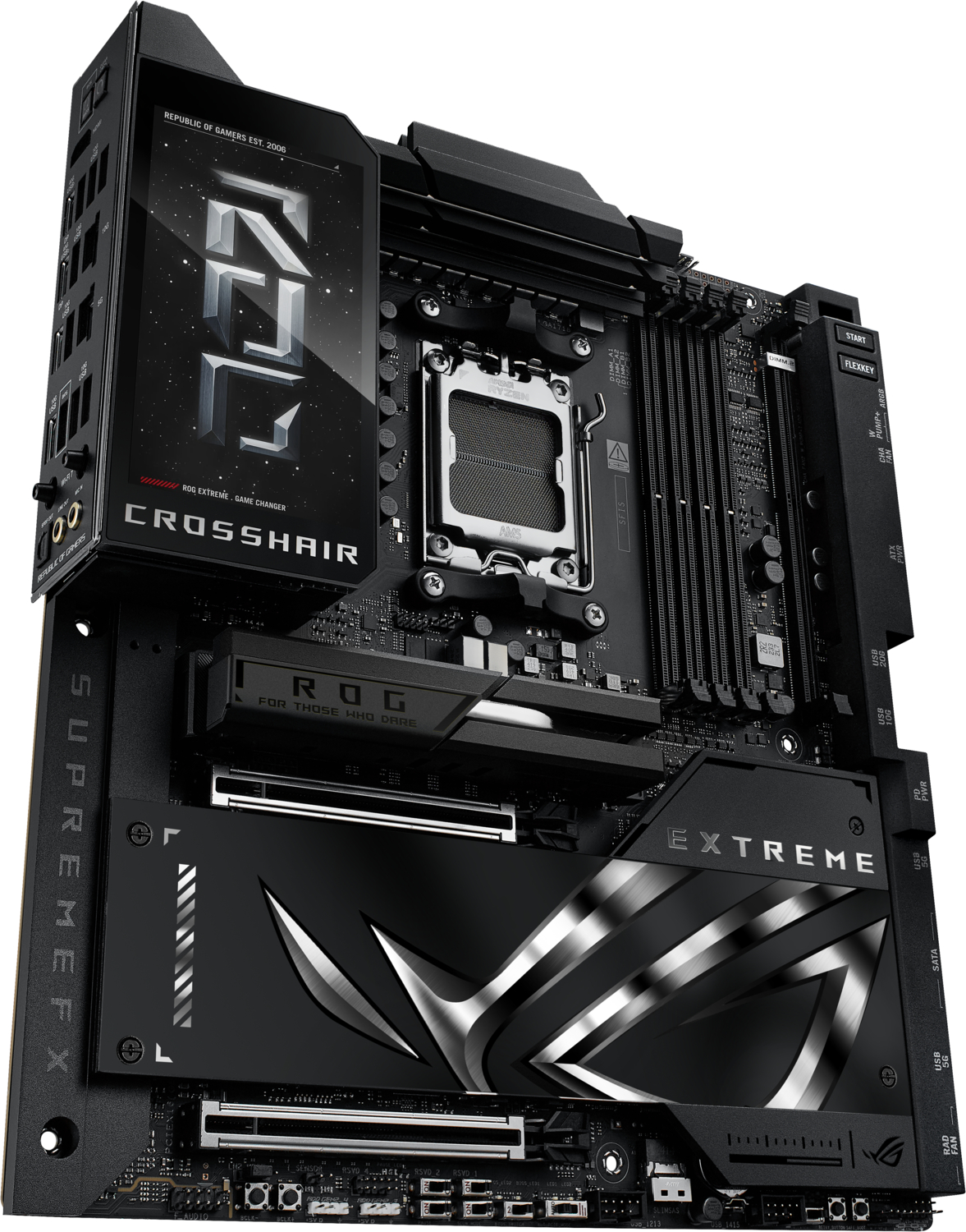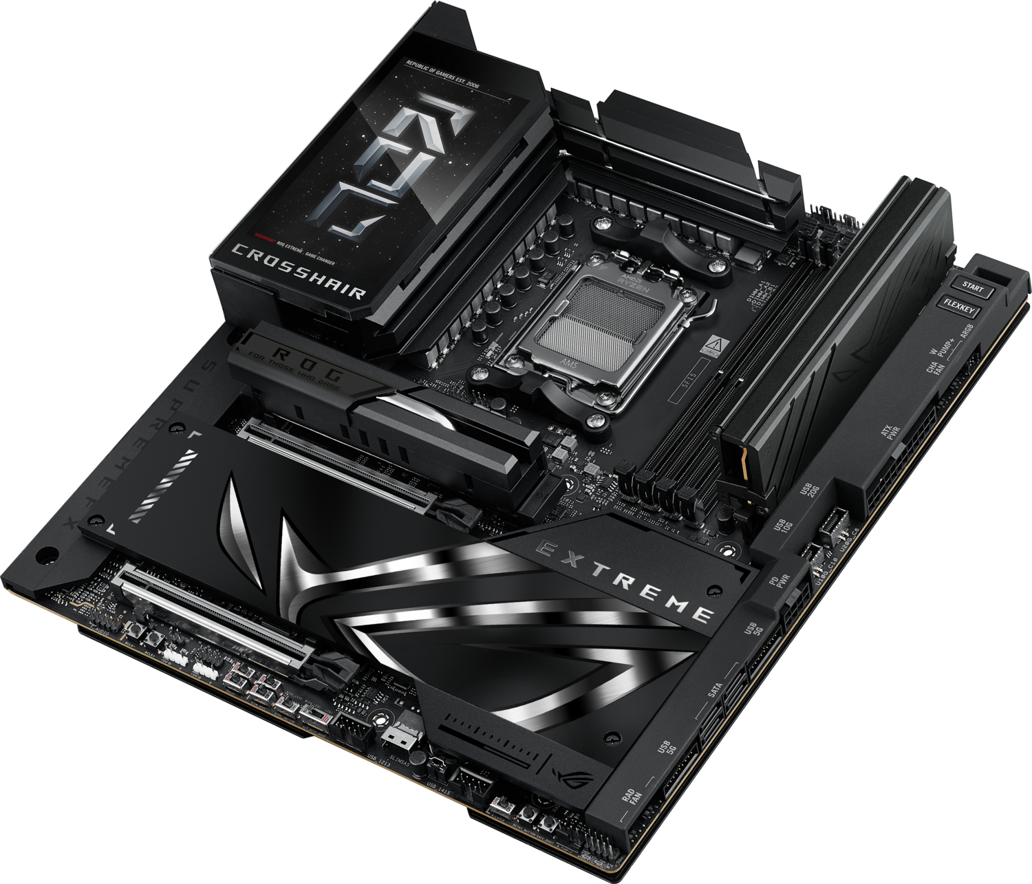ROG Crosshair X870E Extreme оснащена полноцветным 5-дюймовым ЖК-экраном, который может отображать эксклюзивные анимации ROG, системную информацию и даже персонализированные услуги через Armoury Crate, позволяя геймерам определять свой уникальный стиль на ярком дисплее.